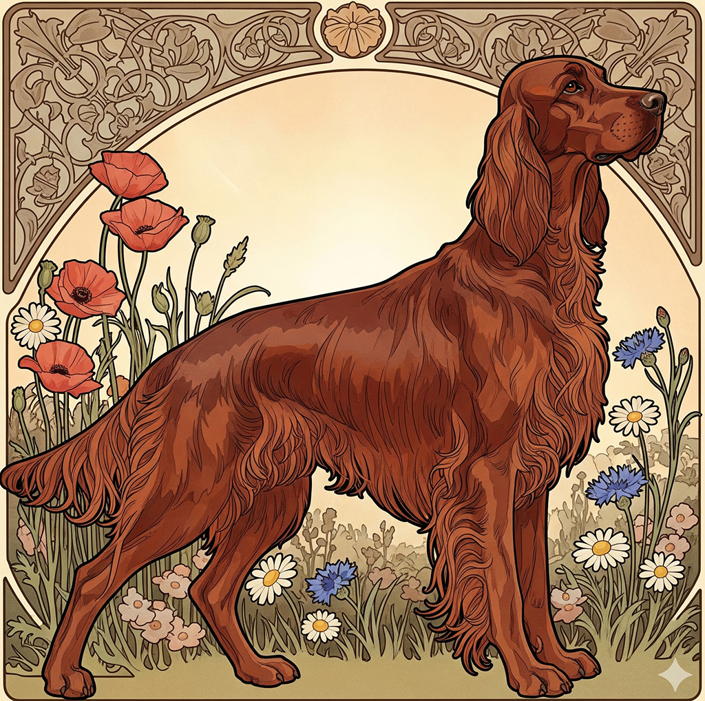 The Irish Setter, known for its elegant appearance and vibrant red coat, originated in Ireland during the 18th century. This breed likely emerged from a mix of spaniels, setters, and pointers, with the goal of creating a skilled hunting dog. By the early 19th century, selective breeding refined the Irish Setter’s distinctive traits, emphasizing its athletic build and keen hunting instincts. The breed’s characteristic mahogany or rich chestnut coat became a hallmark, distinguishing it from other setters like the English and Gordon Setters. Recognized for its beauty and utility, the Irish Setter gained popularity in Europe and was exported to the United States by the mid-1800s.