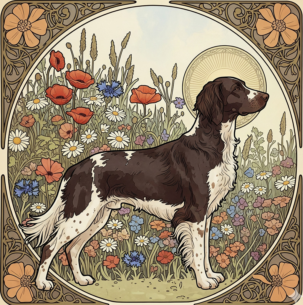 The Munsterlander’s history begins with the bird and hawking dogs of medieval Europe, which were likely descendants of the now-extinct Old Spanish Pointer. These dogs spread across Europe, used for hunting with nets or falcons and later with firearms. By the 19th century, German hunters developed distinct breeds, including the German Longhaired Pointer, from which the Large Munsterlander emerged. The Large Munsterlander was formalized as a separate breed in 1919 when the German Longhaired Pointer Club excluded black-and-white dogs from its standard, prompting enthusiasts to establish a new breed society for these dogs, named the Großer Münsterländer Vorstehhund. The first stud-book was published in 1922, and the breed was recognized by the Fédération Cynologique Internationale in 1954 and the United Kennel Club in 2006.